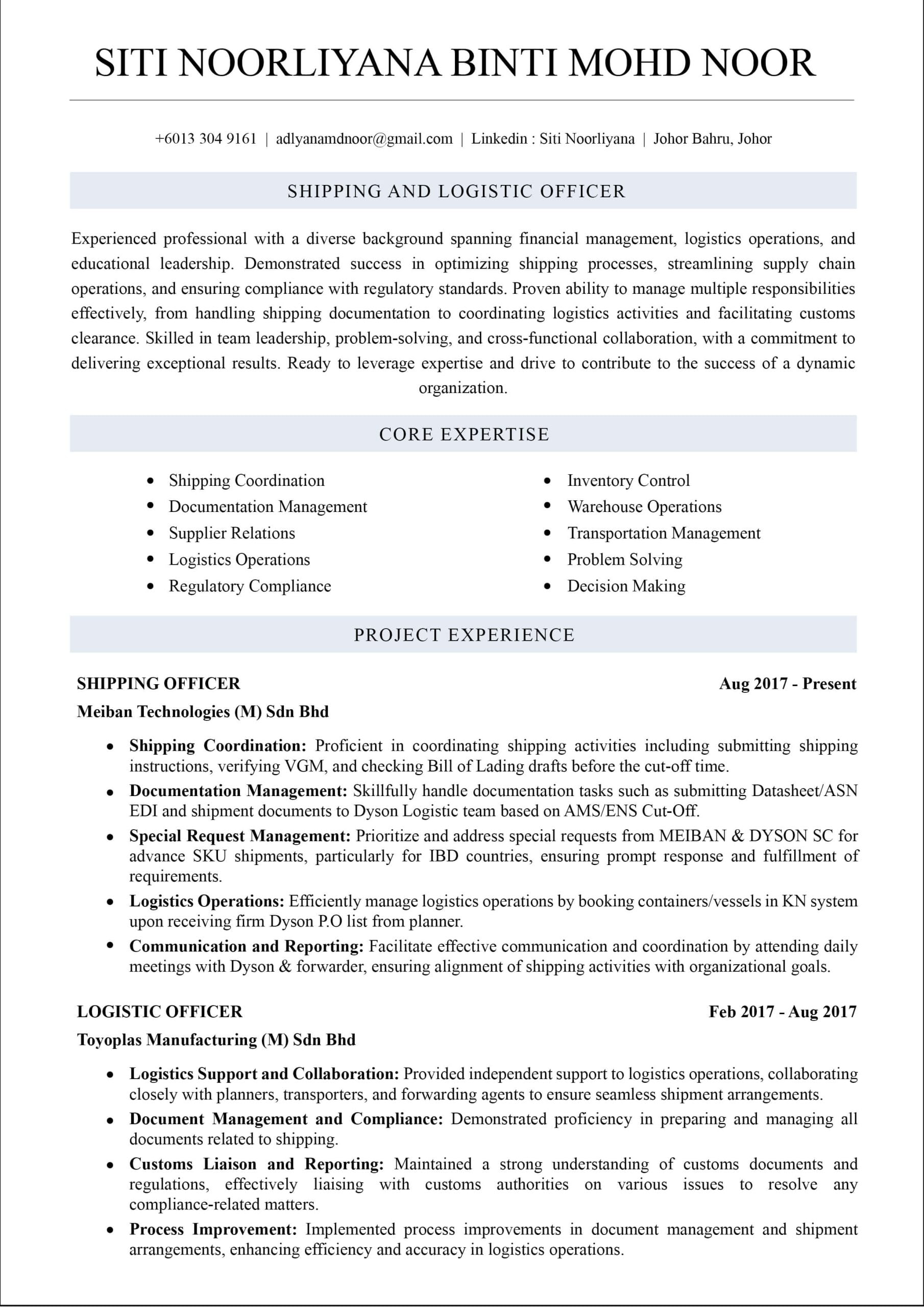 Untuk yang dah beberapa tahun kerja, penting untuk highlight pengalaman kerja dan pencapaian yang boleh diukur. Jangan lupa letak kemahiran teknikal dan software yang relevan dengan industri.